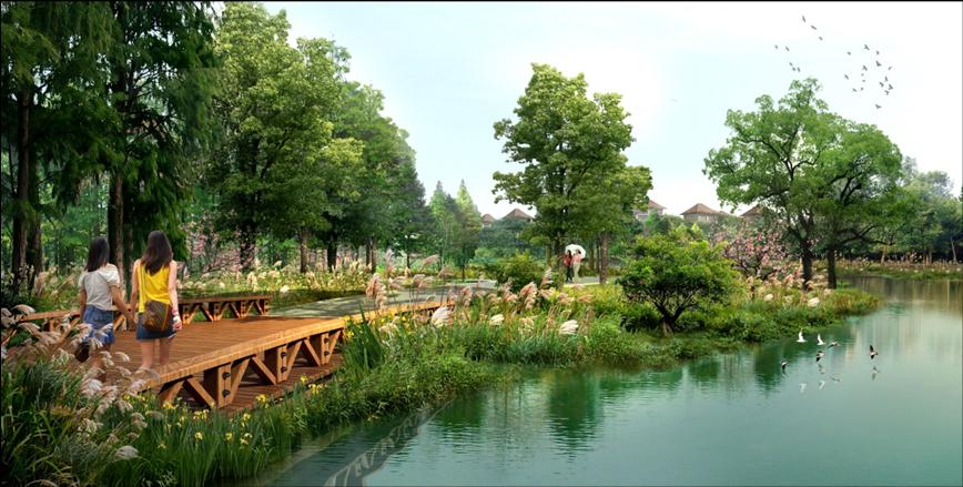 園區(qū)依山面水,利用山體造型和道路節(jié)點,不斷營造出曲徑通幽的景觀意境及由綠蔭小道過渡為豁然開朗的闊敞空間的視覺沖擊效應(yīng),處處著眼人性化的設(shè)計,充分考慮人的審美需求、教育需求、精神傳承與升華需求。
